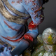 The realistic painted scars all over her body and blood stained bandages enhance the painful image.